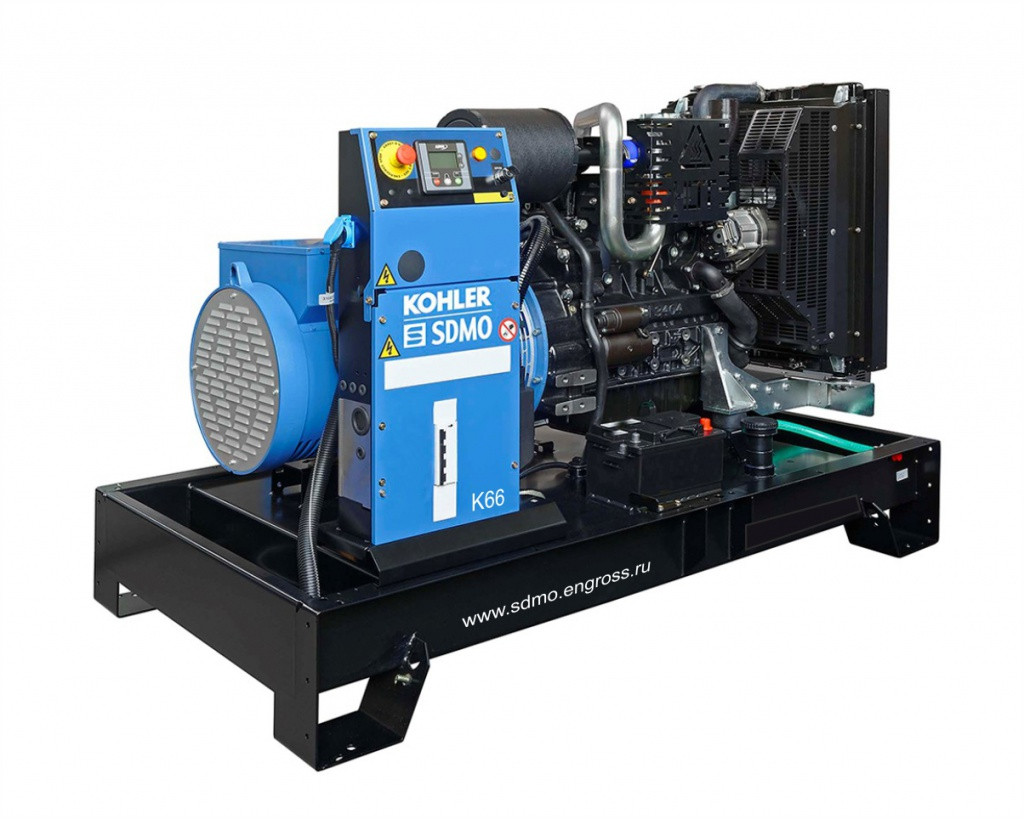 Трифазний дизельний генератор SDMO K 66 для інтенсивної експлуатації у важких режимах для живлення професійного інструменту, як резервне джерело у разі вимкнення електроенергії. Модель обладнана двигуном KOHLER KDI3404TM Американського виробництва. Ці двигуни мають мінімальні вимоги до умов експлуатації, якості палива та високу надійність.